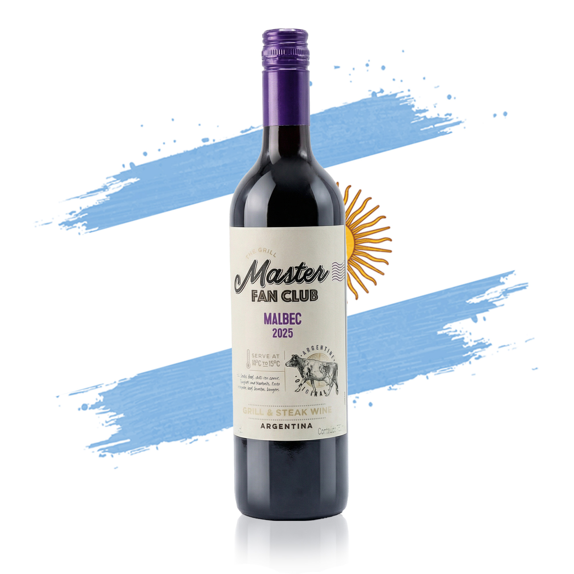 Vinho The Grill Master Fan Club Malbec é intenso, macio e cheio de sabor. Apresenta aromas de frutas escuras maduras, com leve toque de especiarias e taninos suaves. Um Malbec pensado para a brasa, ideal para acompanhar carnes grelhadas, churrascos e encontros descontraídos. Um vinho fácil de beber, feito para bons momentos ao redor do fogo.